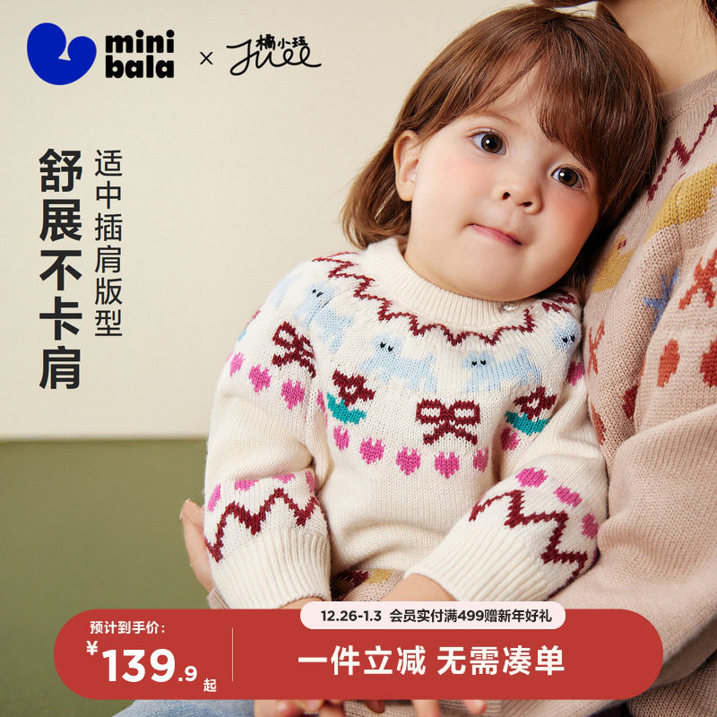【费尔岛毛衣】迷你巴拉男女童亲子毛衫冬新年红色萌趣艺术家联名