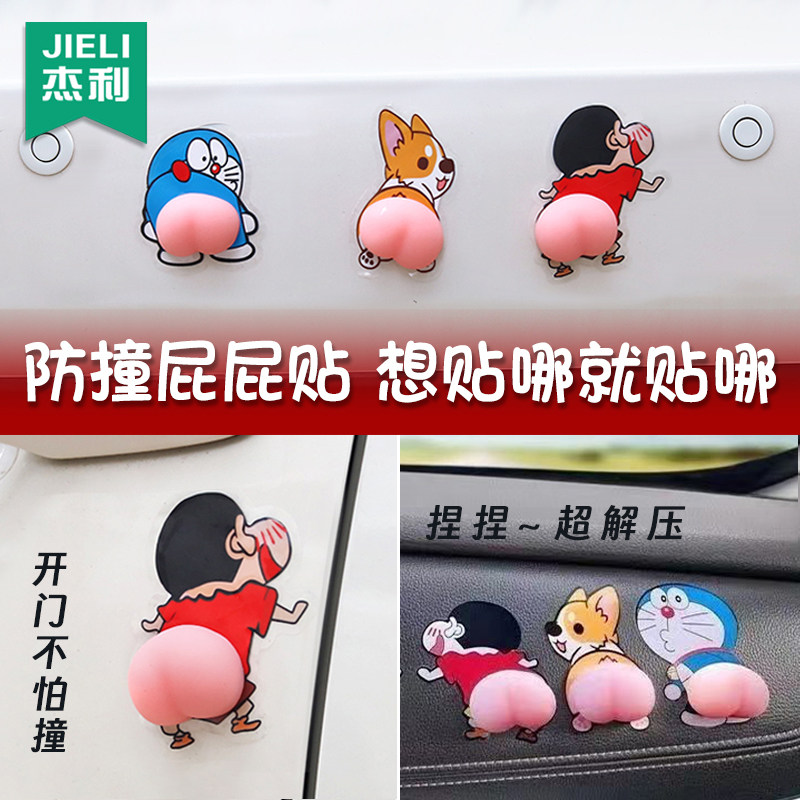 可爱软屁屁硅胶防磕冰箱贴3d立体卡通防撞贴硅胶家用装饰车门防撞条汽车防刮蹭车贴门边保险杠防撞神器捏捏乐