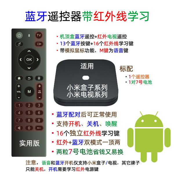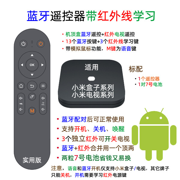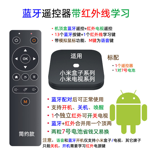 通用小米盒子3S/4/4S/ProMAX/5/5S蓝牙遥控器带红外学习电视开关