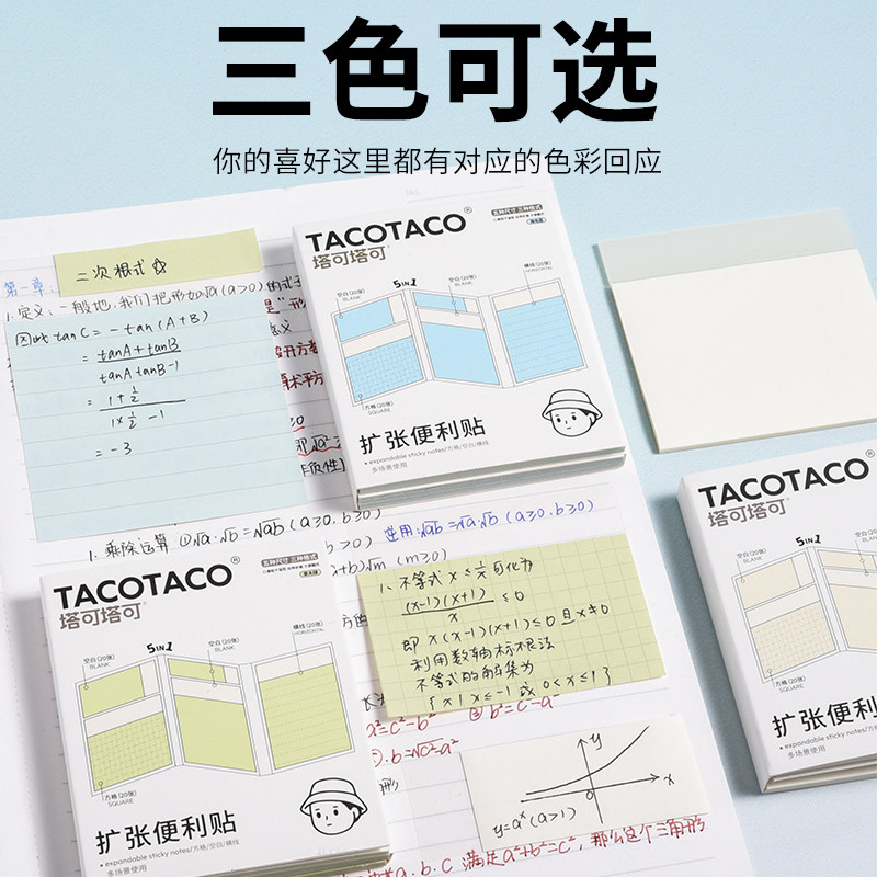 TACOTACO任意贴扩张便利贴不遮挡可折叠学生用可撕有粘性便签本贴纸考研任意贴初高中生三合一二五合一便签纸