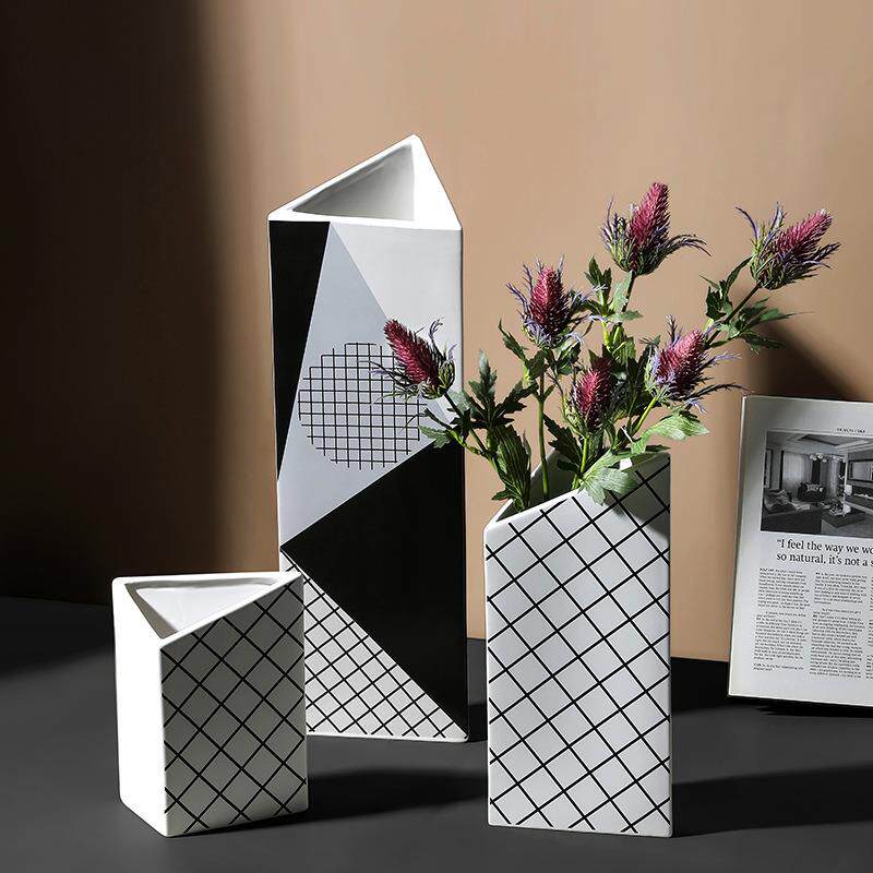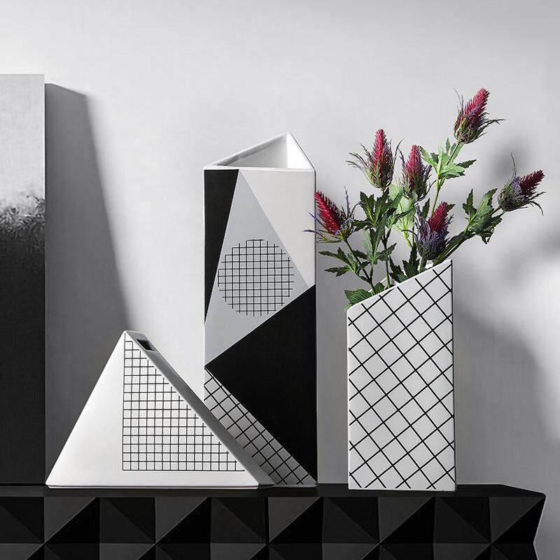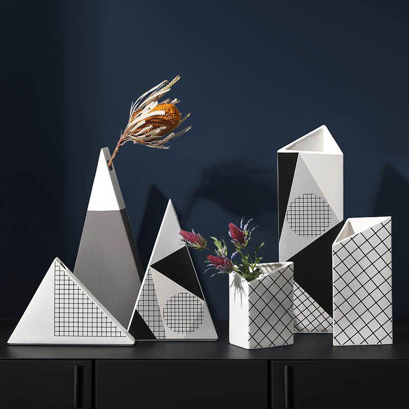 北欧几何陶瓷花瓶摆件客厅电视柜餐桌创意插花瓶家居软装饰品