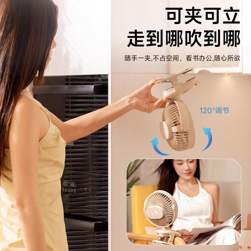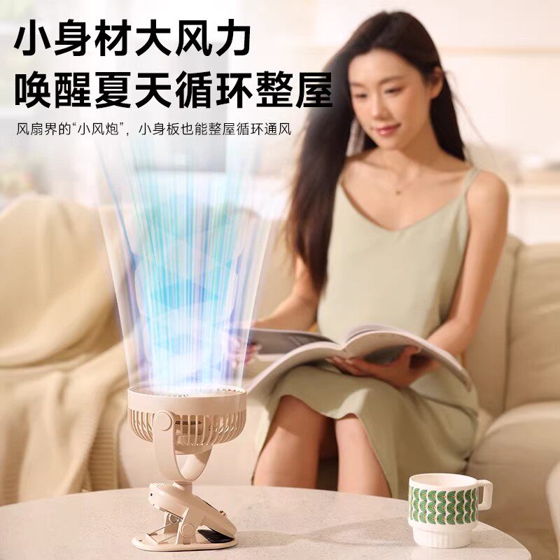 桌面小风扇办公室桌上家用充电风扇usb制冷小型静音学生宿舍床上迷你婴儿车载便携摇头夹子式超长续航大风力