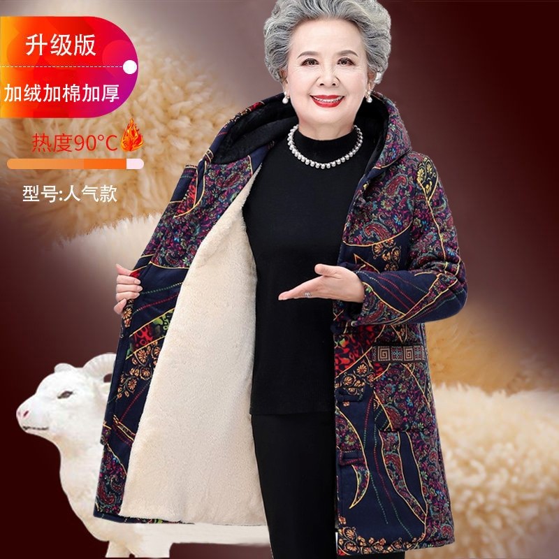 奶奶装冬装棉衣中老年外套加绒加厚棉袄中长款女装女加棉民族风