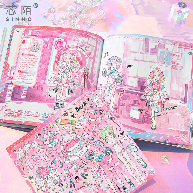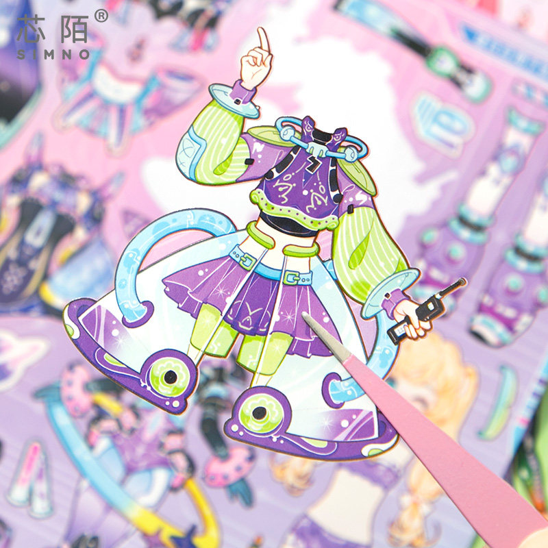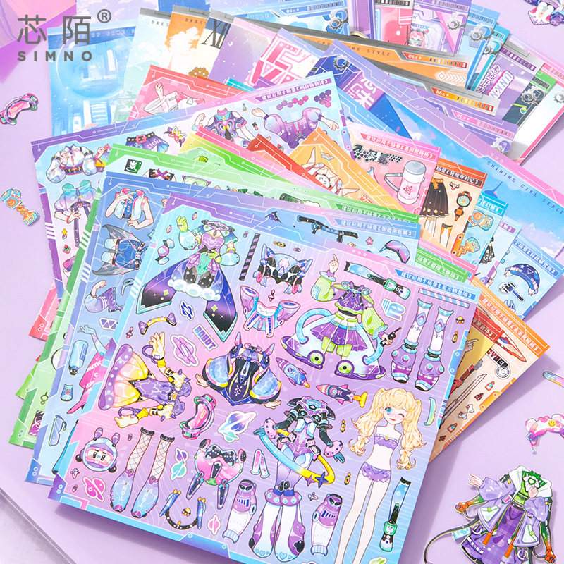 赛博朋克换装贴纸本新款高颜值换装贴纸书可爱卡通儿童diy手杖贴纸本公主换装衣橱贴纸册女孩手工diy玩具贴