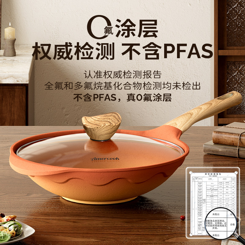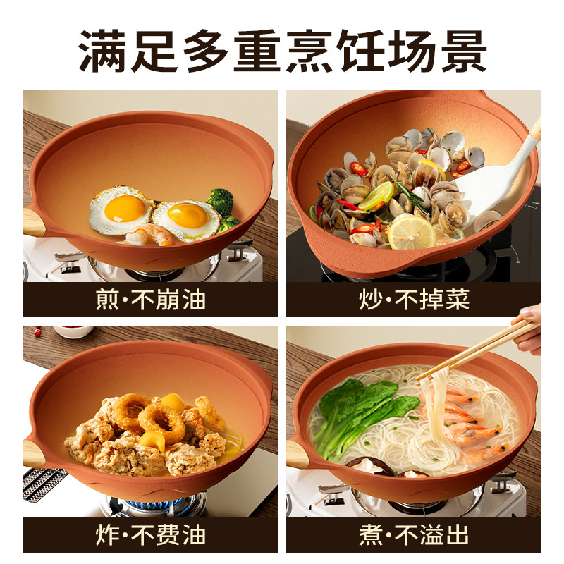 Amercook阿米尔阿尔菲塔复古陶土炒锅家用不粘锅炒菜锅燃气电磁炉