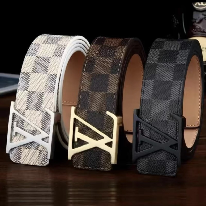 皮带男士真皮印花格纹新款平滑内扣年轻人名牌腰带奢侈品裤带男潮