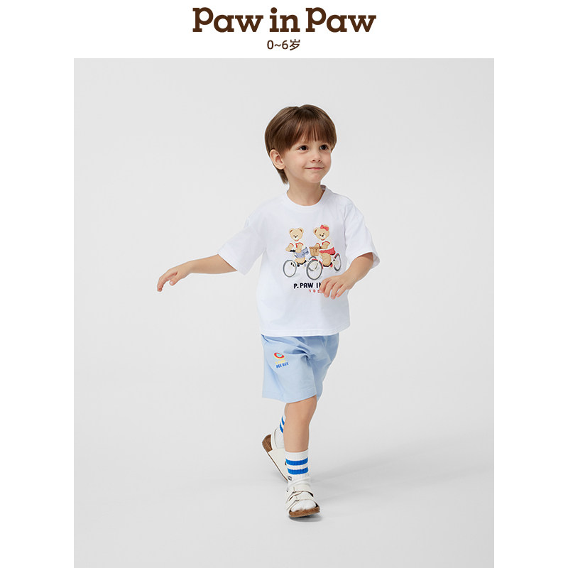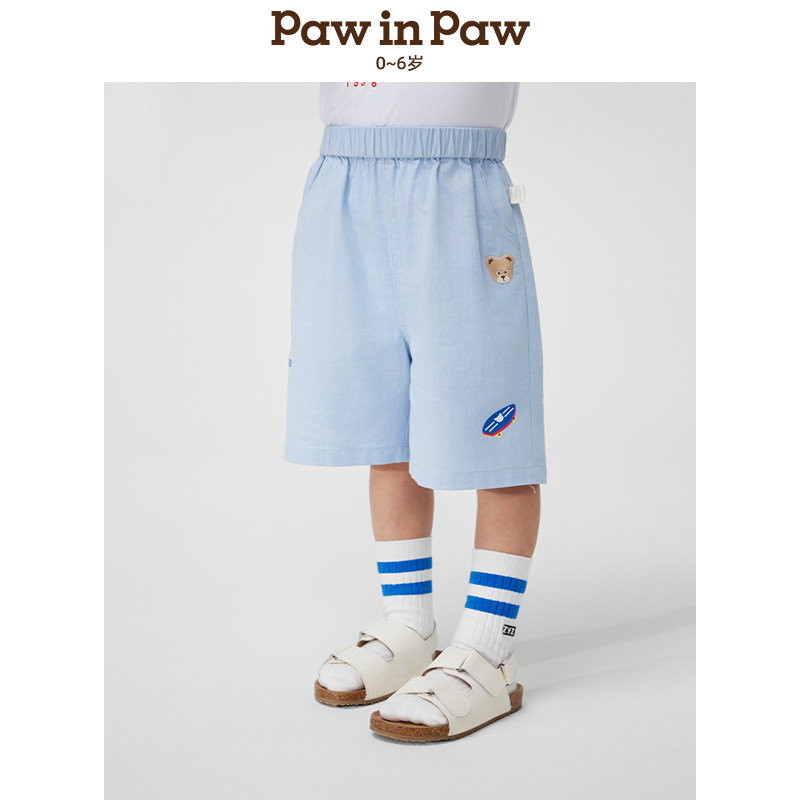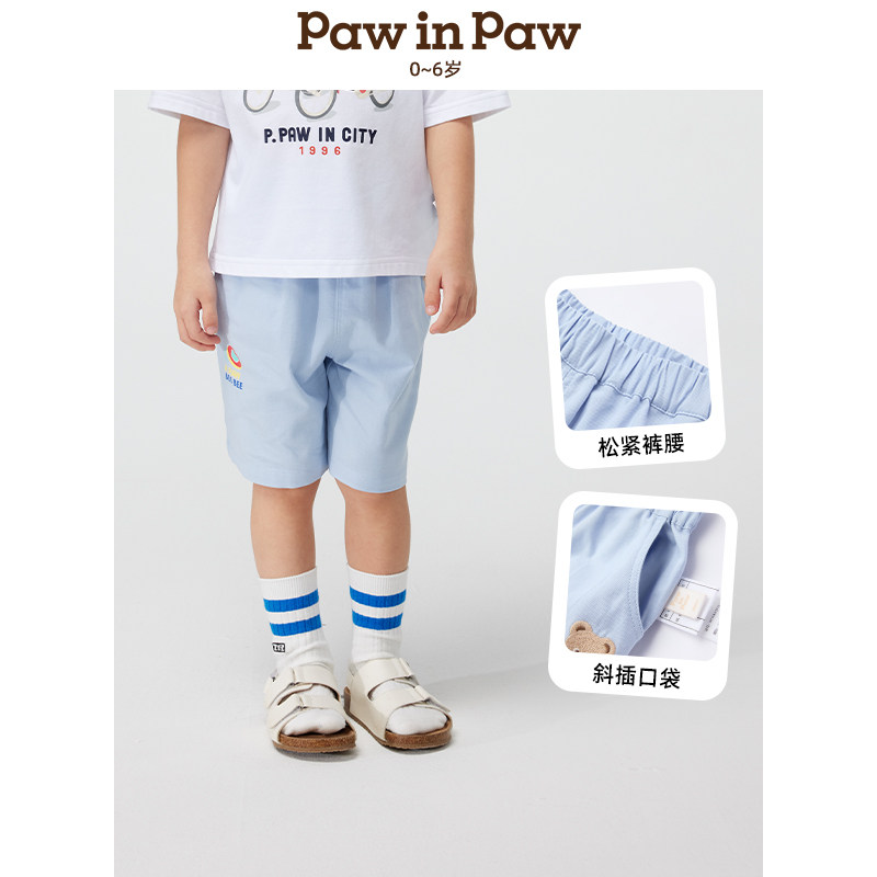 PawinPaw卡通小熊童装春夏男宝宝宽松舒适七分裤纯棉短裤
