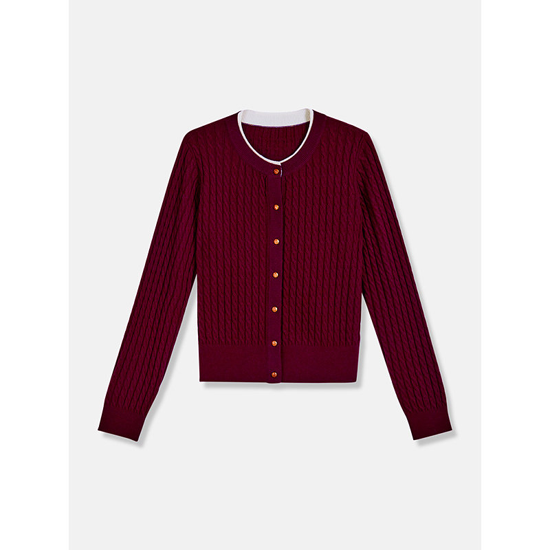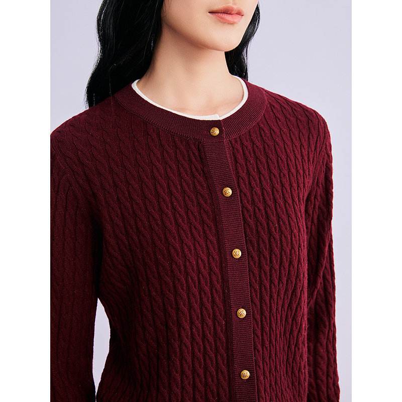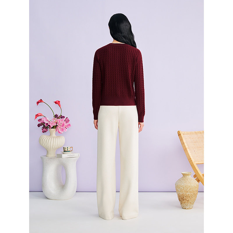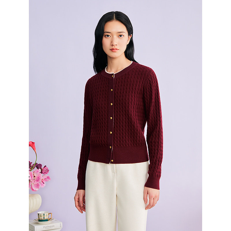 YINER音儿专选2026春季新款复古优雅绞花肌理羊毛羊绒混纺针织衫