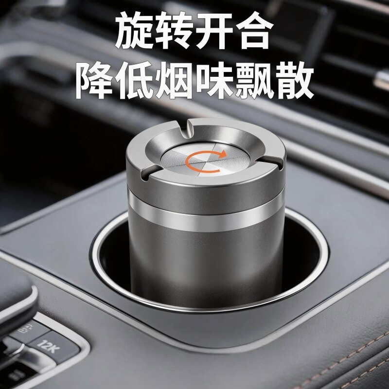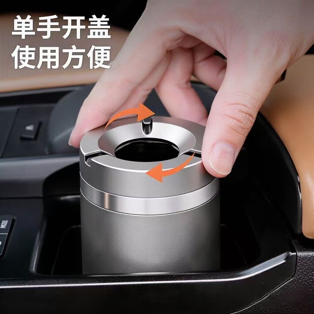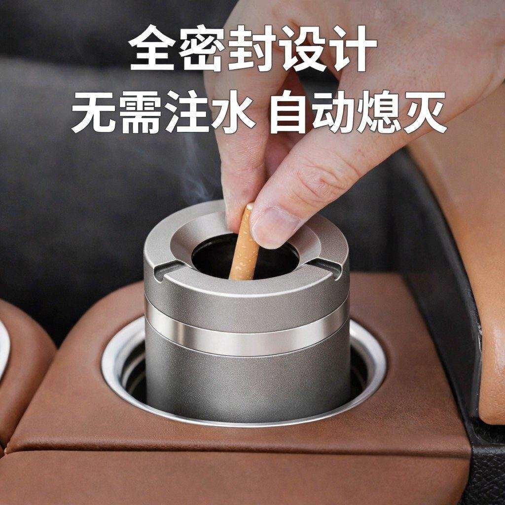 车载烟灰缸高端铝合金带盖车门边防飞灰高级创意车内汽车用多功能
