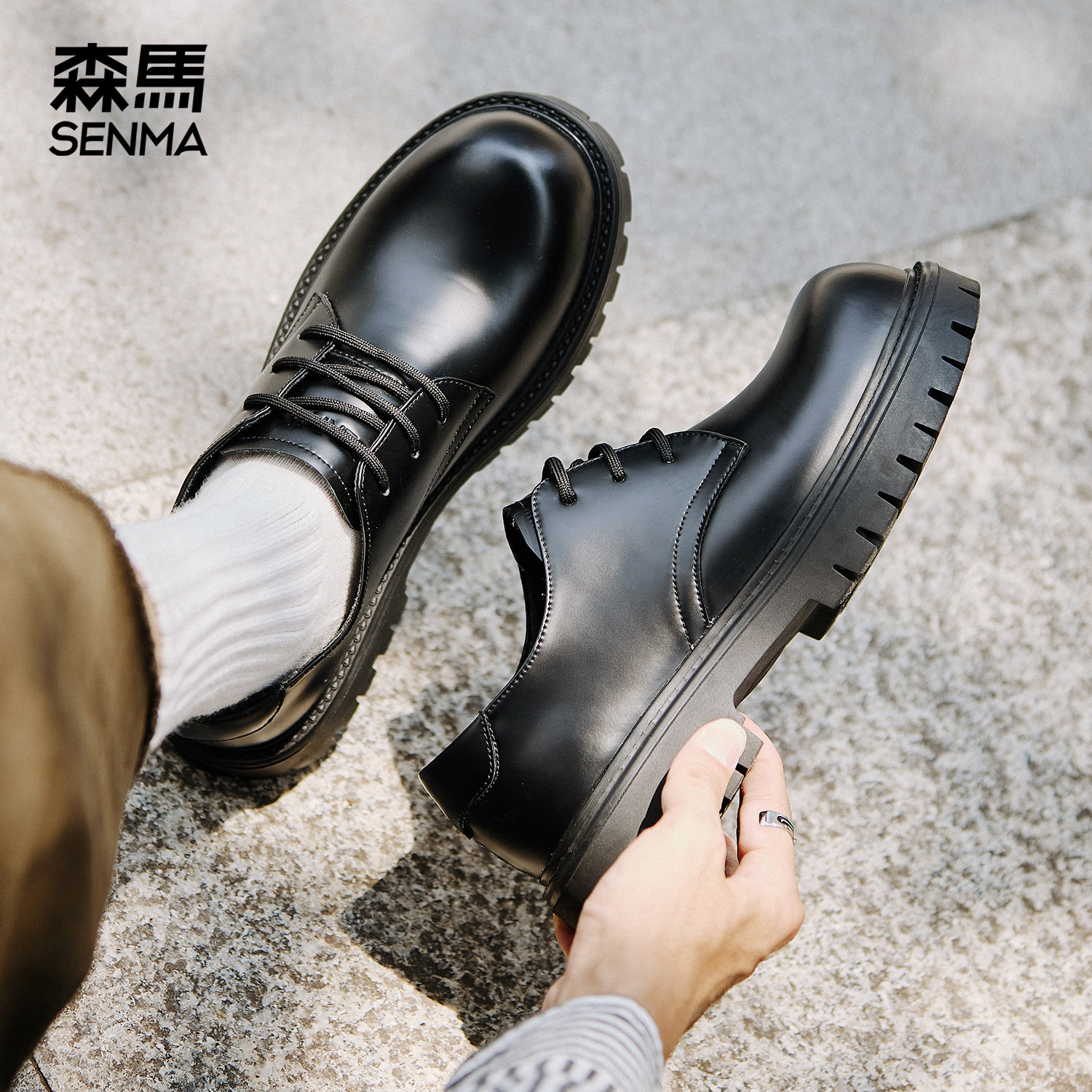 森马黑色厚底德比鞋男款2025新款大头皮鞋增高圆头低帮工装马丁靴