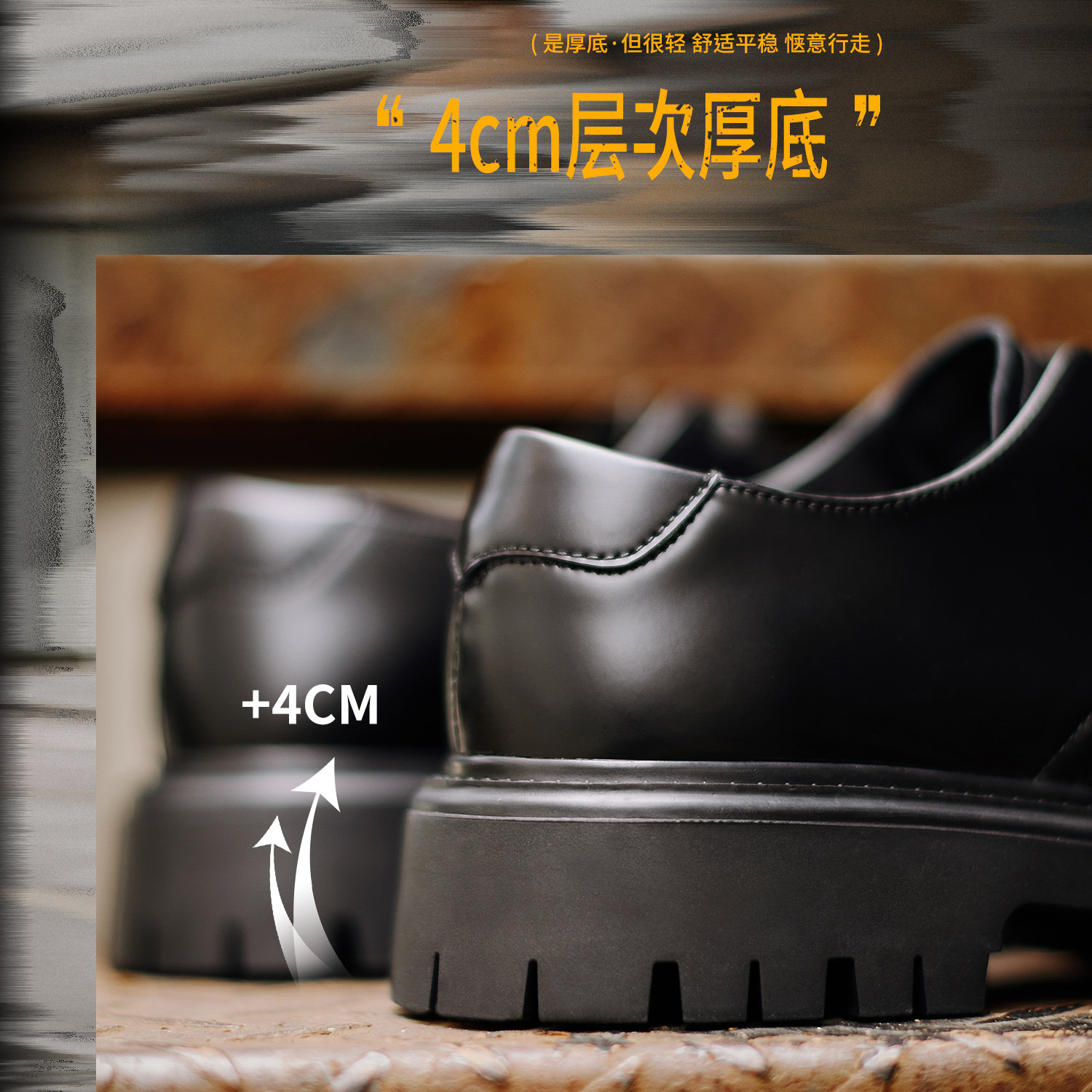皮鞋男款高级感厚底增高英伦通勤大头德比鞋男冬季新款低帮马丁靴