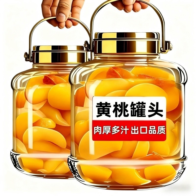 新鲜黄桃罐头正品510g桃子商用玻璃瓶水果罐头糖水果汁零食品整箱