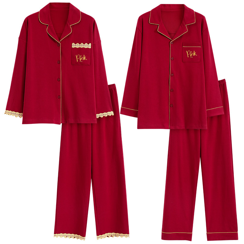 结婚情侣睡衣秋冬季长袖长裤纯棉红色新婚春秋款本命年女士家居服