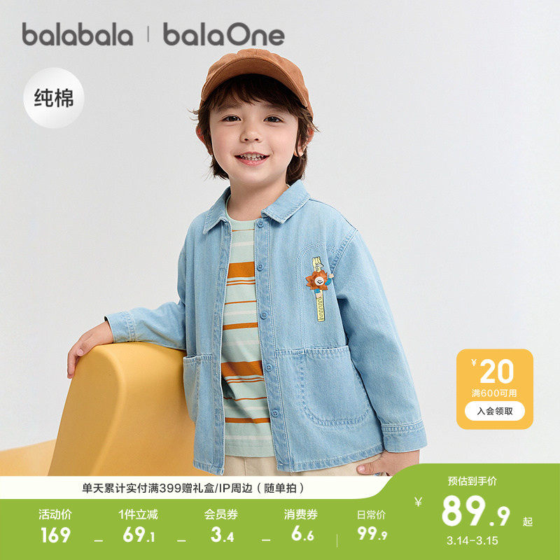 巴拉巴拉童装宝宝长袖衬衫纯棉牛仔外套男童衬衣女童2026休闲春装