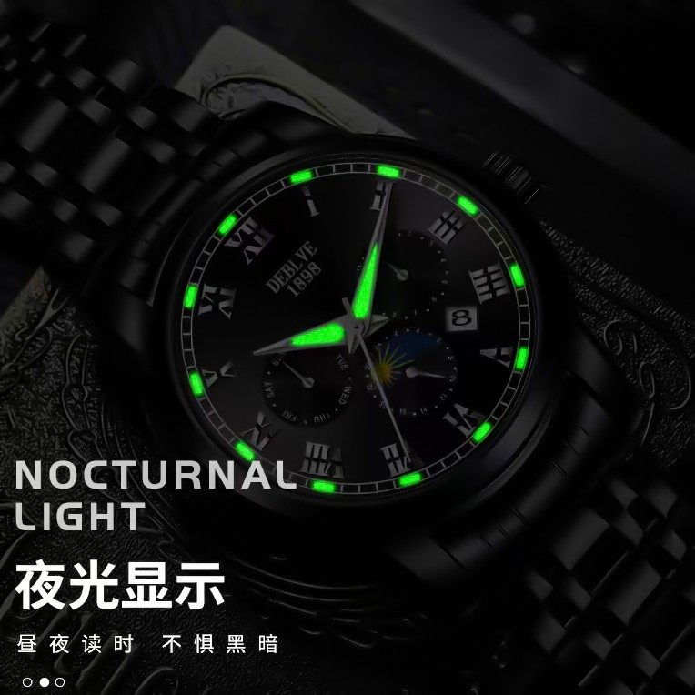 手表男款防水高级感全自动男表数字双日历防水腕表男机械风全自动