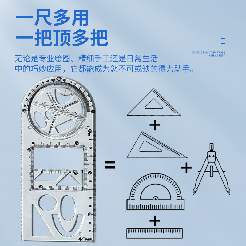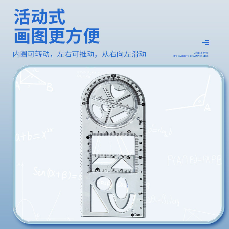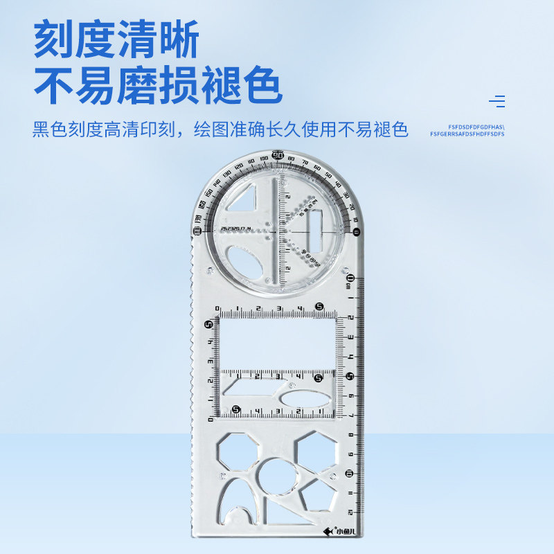 小鱼儿多功能尺子画圆几何图形绘图手抄报手帐模板三角直尺函数尺
