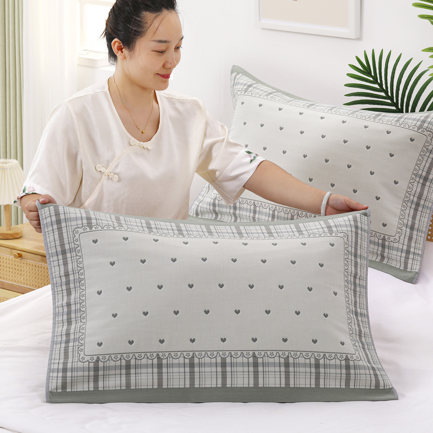 纯棉纱布枕巾一对装新款加厚柔软吸汗成人家用盖巾男女全棉枕头巾