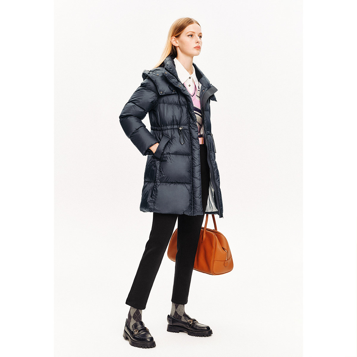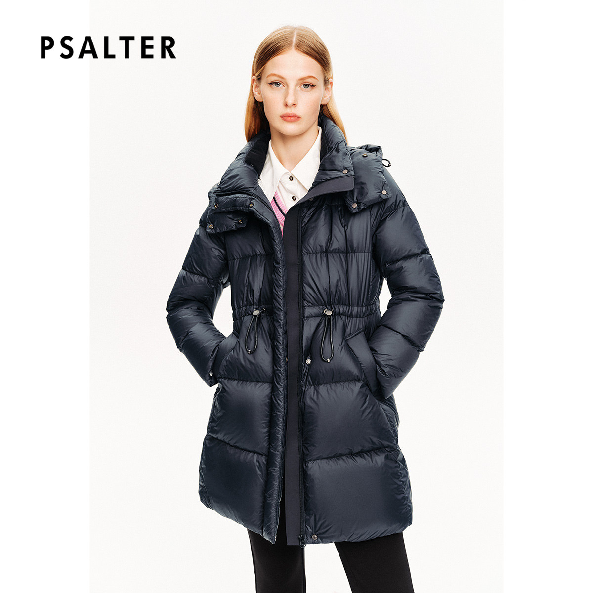 PSALTER诗篇鹅绒服防钻绒抽绳收腰连帽中长款羽绒服冬款