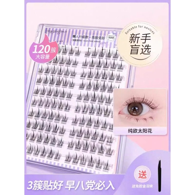 懒人系太阳花假睫毛书女自然仿真三部曲单簇分段式自粘眼睫毛自然