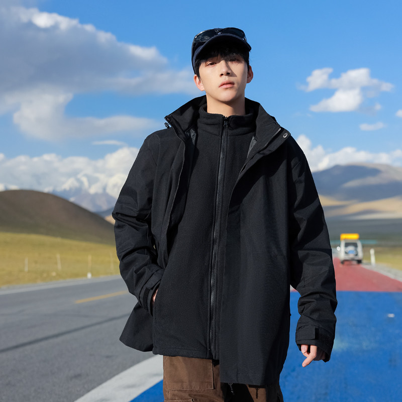 骆驼男装夹克春秋保暖三合一户外三防冲锋衣外套内胆防水徒步登山