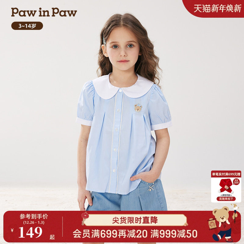 PawinPaw卡通小熊童装25年春夏新款女童可爱翻领短袖衬衫甜美