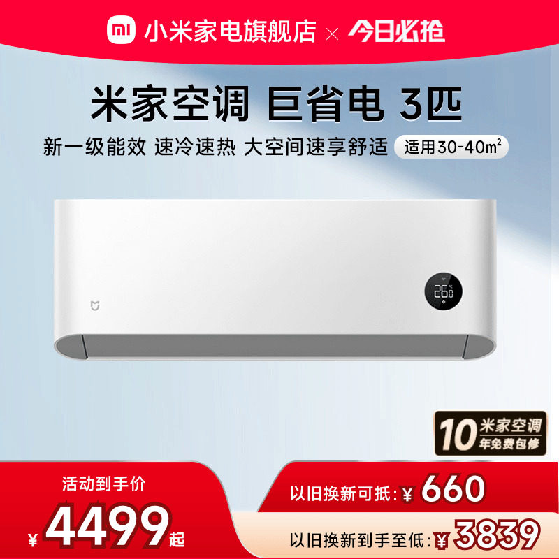 小米米家巨省电空调挂机冷暖两用3匹一级能效变频家用智能壁挂式