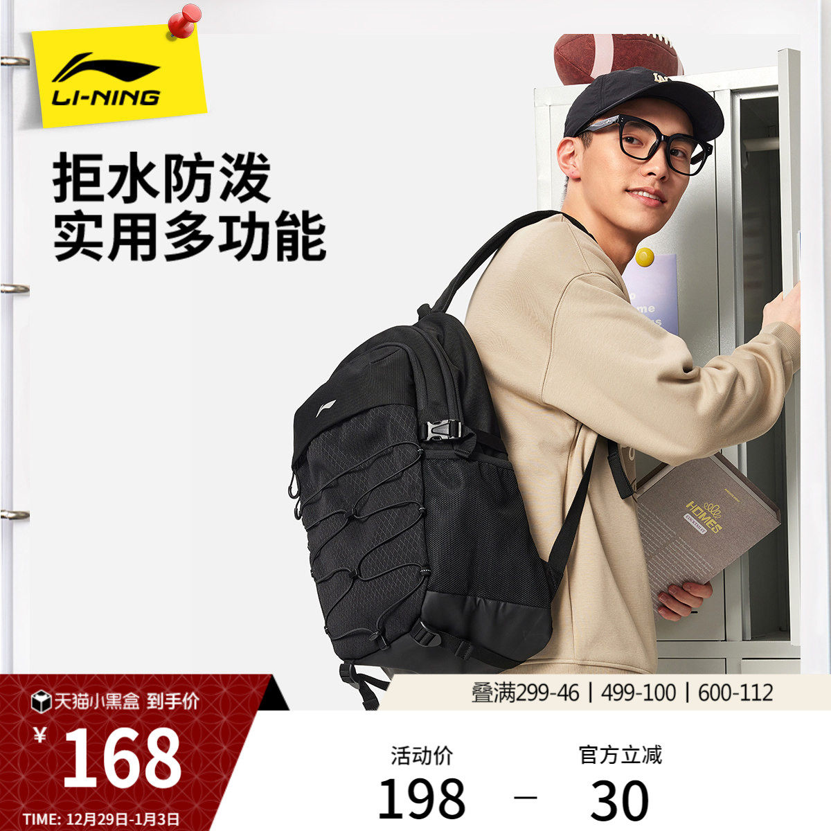 李宁双肩包男包女包2026新款运动生活系列背包学生书包反光运动包