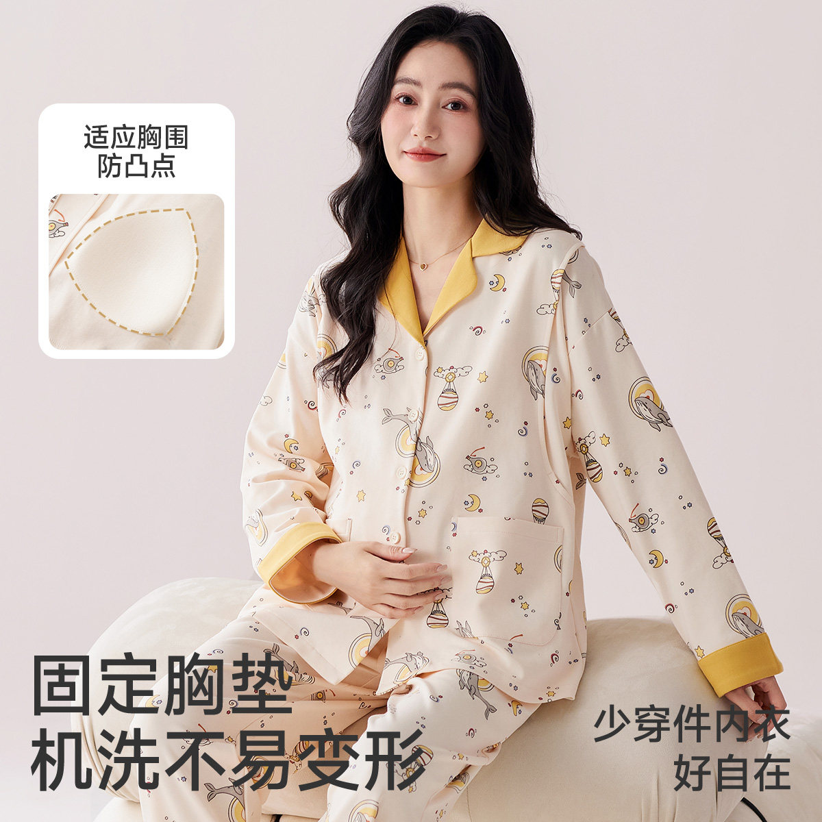 带胸垫月子服秋冬纯棉产后产妇11月份12孕妇家居服哺乳睡衣春秋季