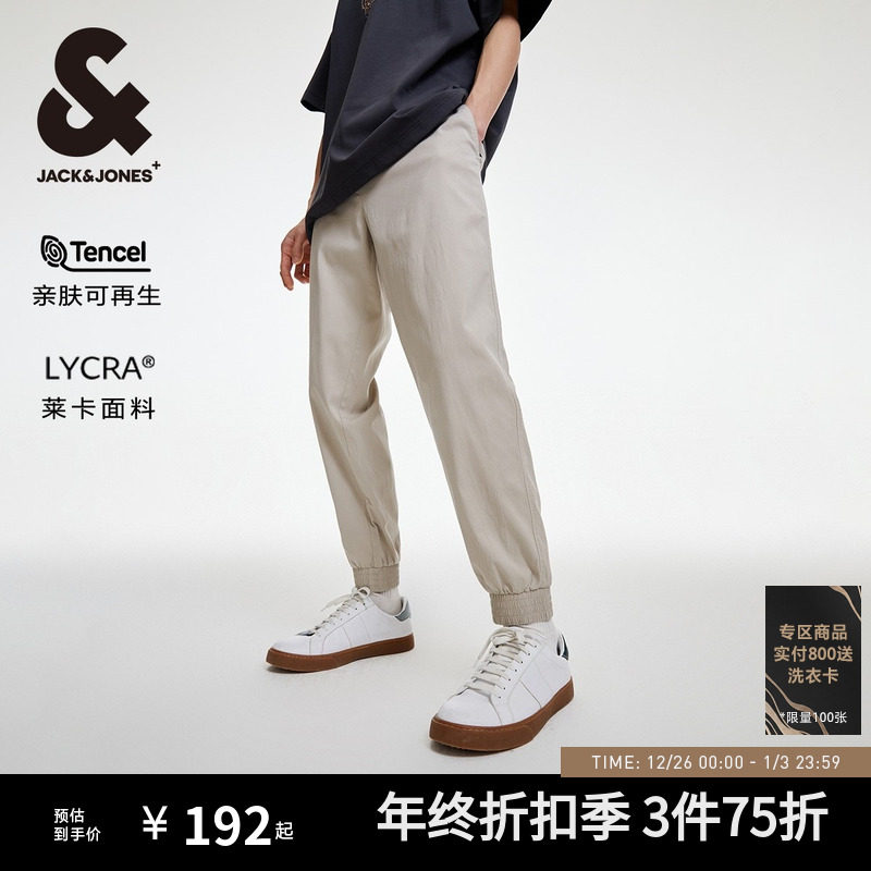 杰克琼斯男装男士长裤子舒适天丝纯色舒适百搭束脚休闲裤2025年秋