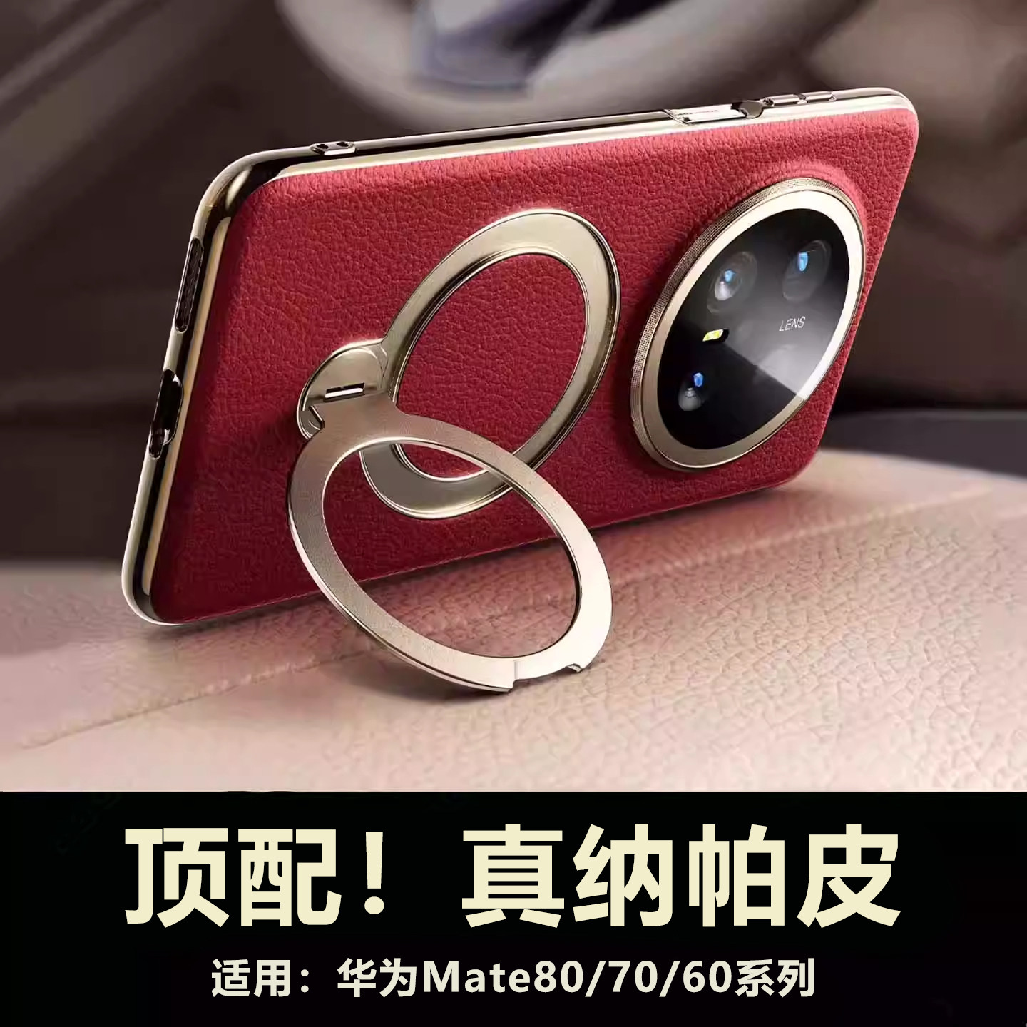 真皮手感适用华为mate80promax手机壳磁吸支架mate70pro+镜头全包防摔保护套mt60商务高级外壳air男女新年红