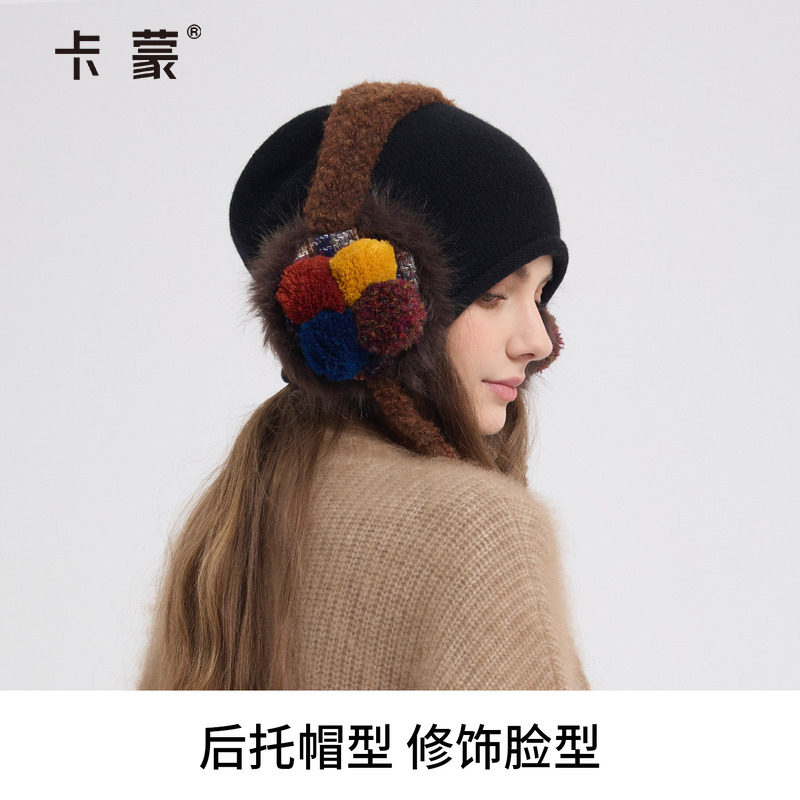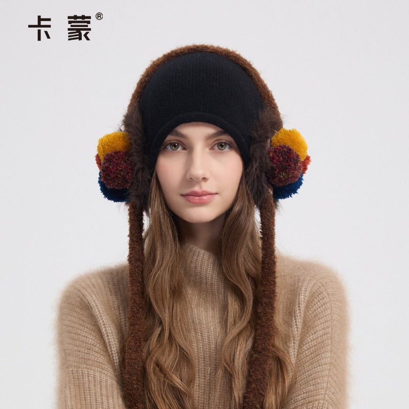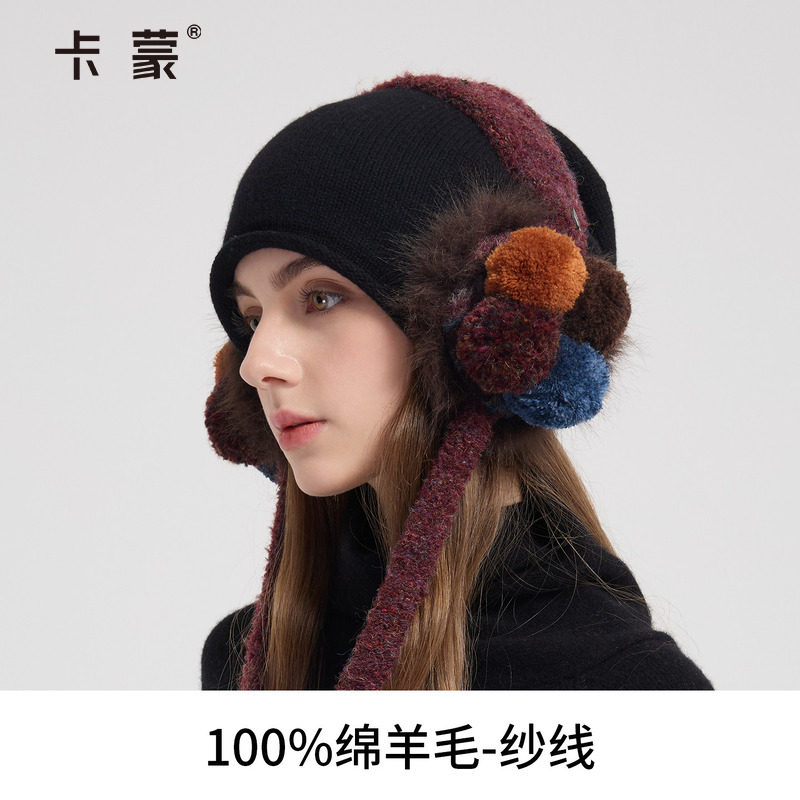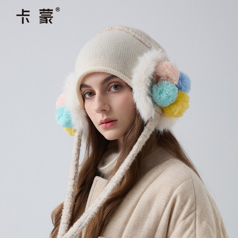 卡蒙帽子女士冬新款耳罩耳包羊毛保暖针织帽防寒护耳帽毛线帽冷帽