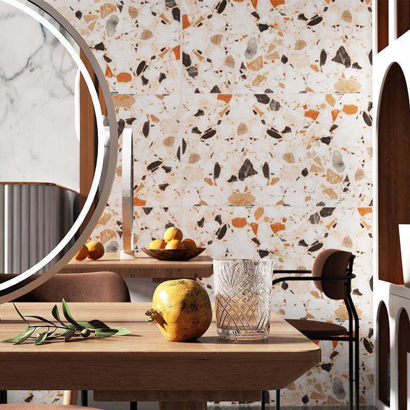 网红彩色大颗粒水磨石瓷砖800×800地板砖仿古客厅灰色室内工装