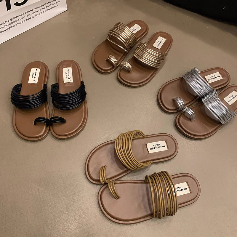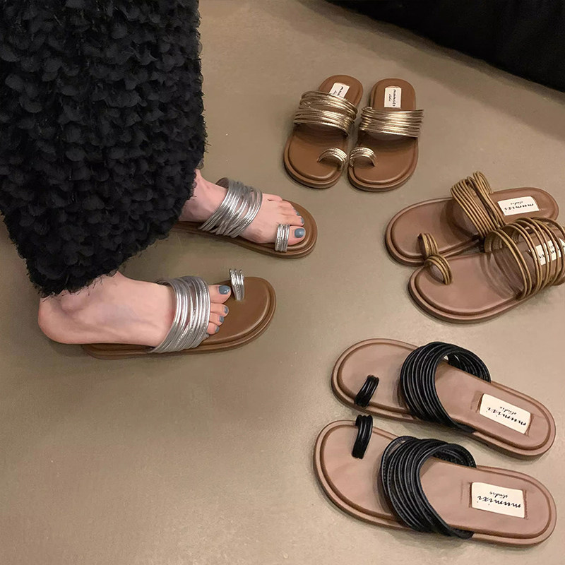 小众套凉拖鞋女夏外穿2026新款配裙子海边平底罗马凉鞋银色金色