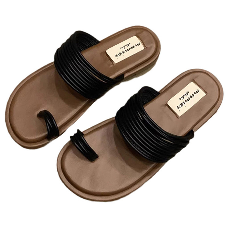 小香风粗跟凉拖鞋女2025夏季新款超软外出配裙子细带凉鞋一字拖鞋