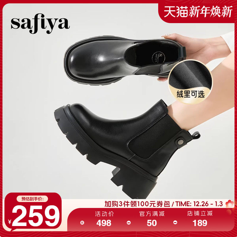 Safiya/索菲娅冬英伦风百搭小个子增高显腿长厚底套筒切尔西短靴