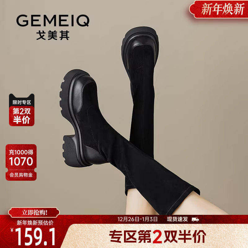 戈美其爆款靴子长筒靴女舒适新款春秋高跟小个子弹力不过膝骑士靴