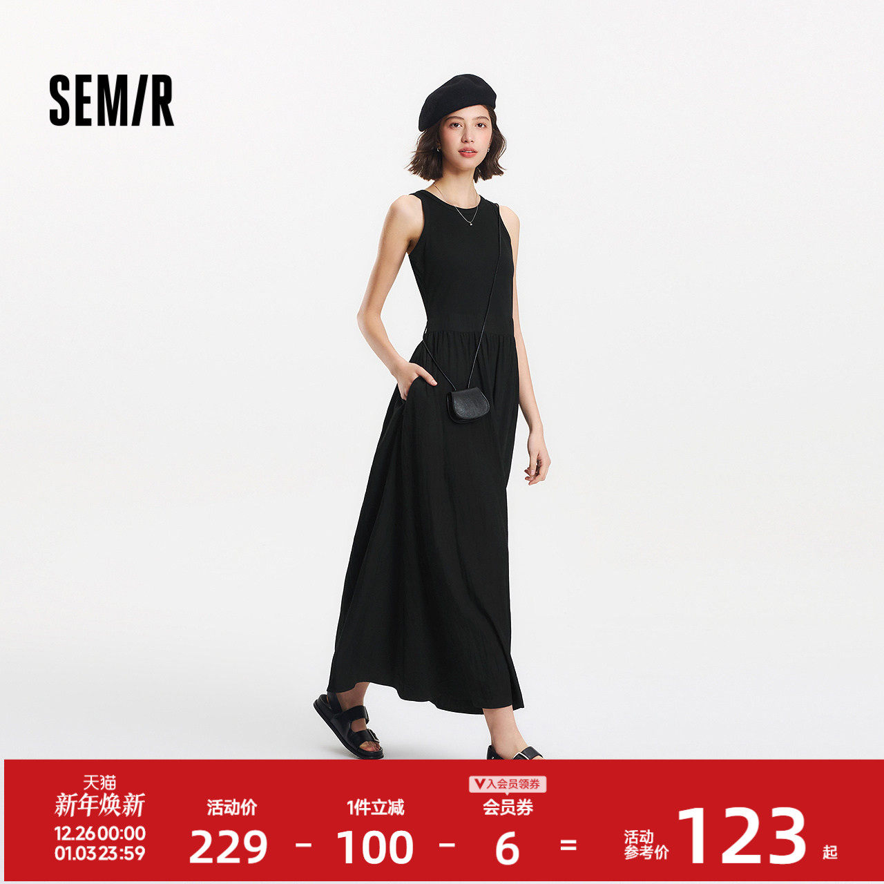 森马连衣裙女拼接背心裙百搭2025夏新款优雅圆领长裙通勤无袖长款