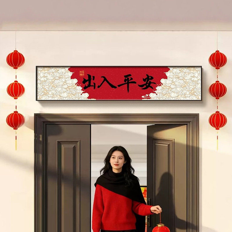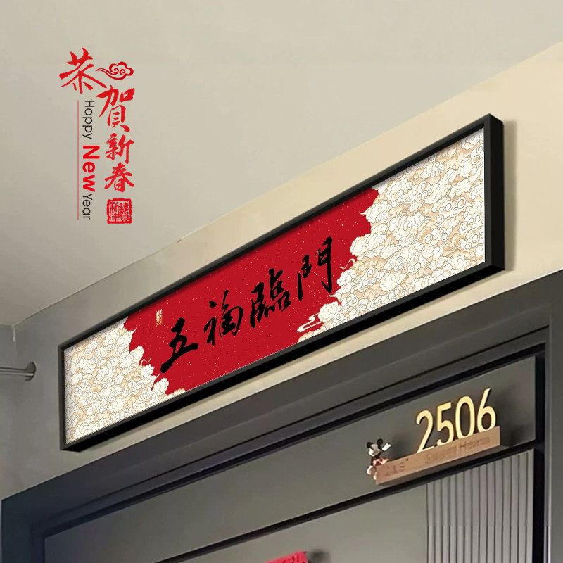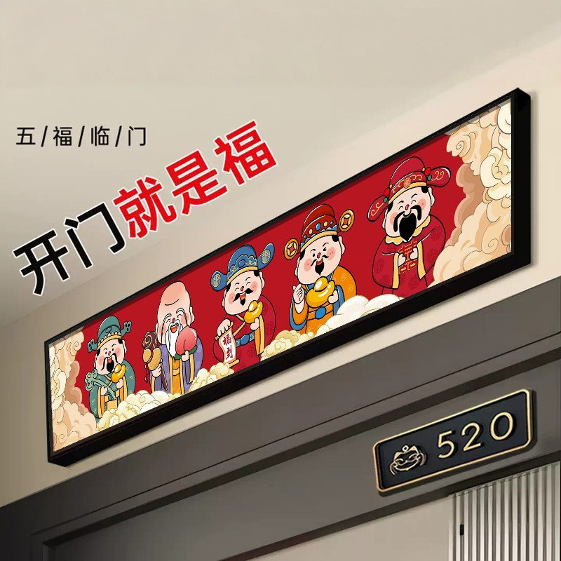 五福临门中式装饰画入户防盗门加高神器门楣门头上方增高挂画壁画