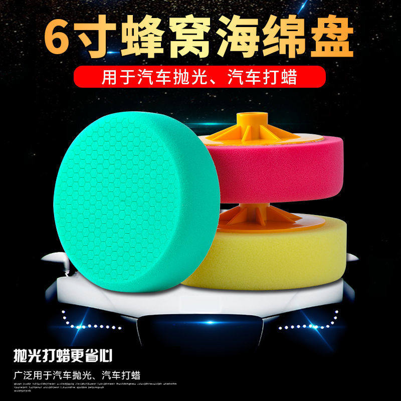 6寸聚酯蜂窝蜂巢打蜡海绵轮汽车抛光绵吸盘漆膜镜面研磨抛光