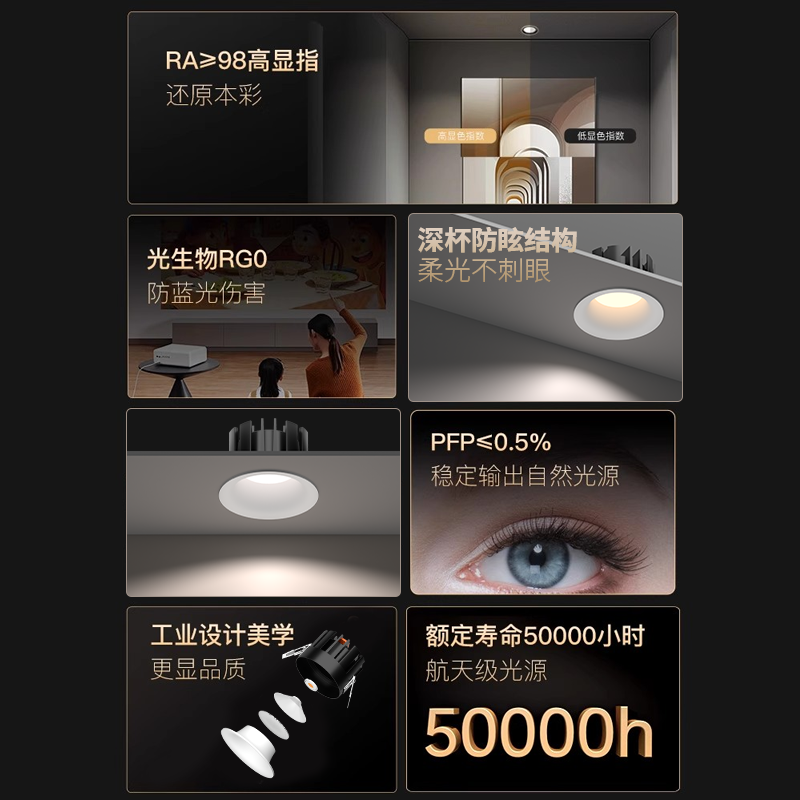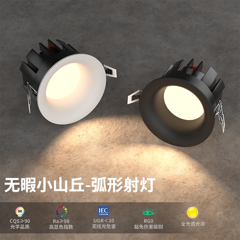 弧面无边框超薄射灯嵌入式非预埋防眩小山丘家用客厅卧室窄边筒灯