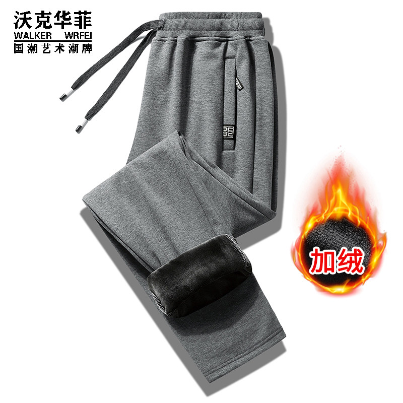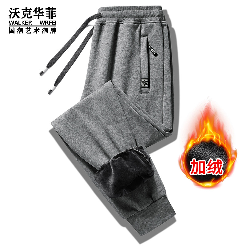男裤加绒加厚保暖卫裤子男士休闲长裤秋冬季带绒外穿束脚运动棉裤