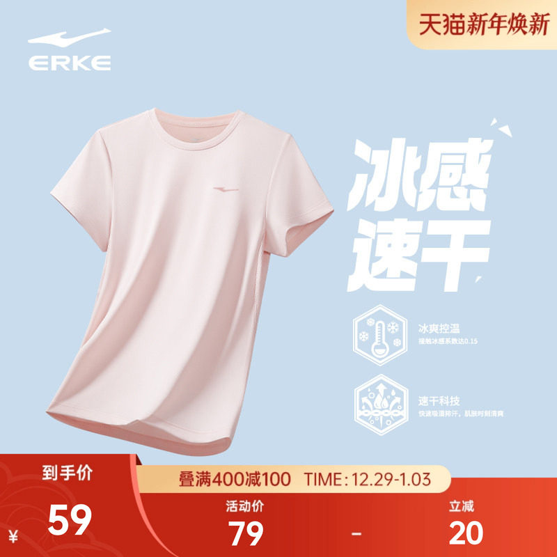 鸿星尔克速干衣女夏季新款女士羽毛球上衣冰丝运动服瑜伽短袖t恤