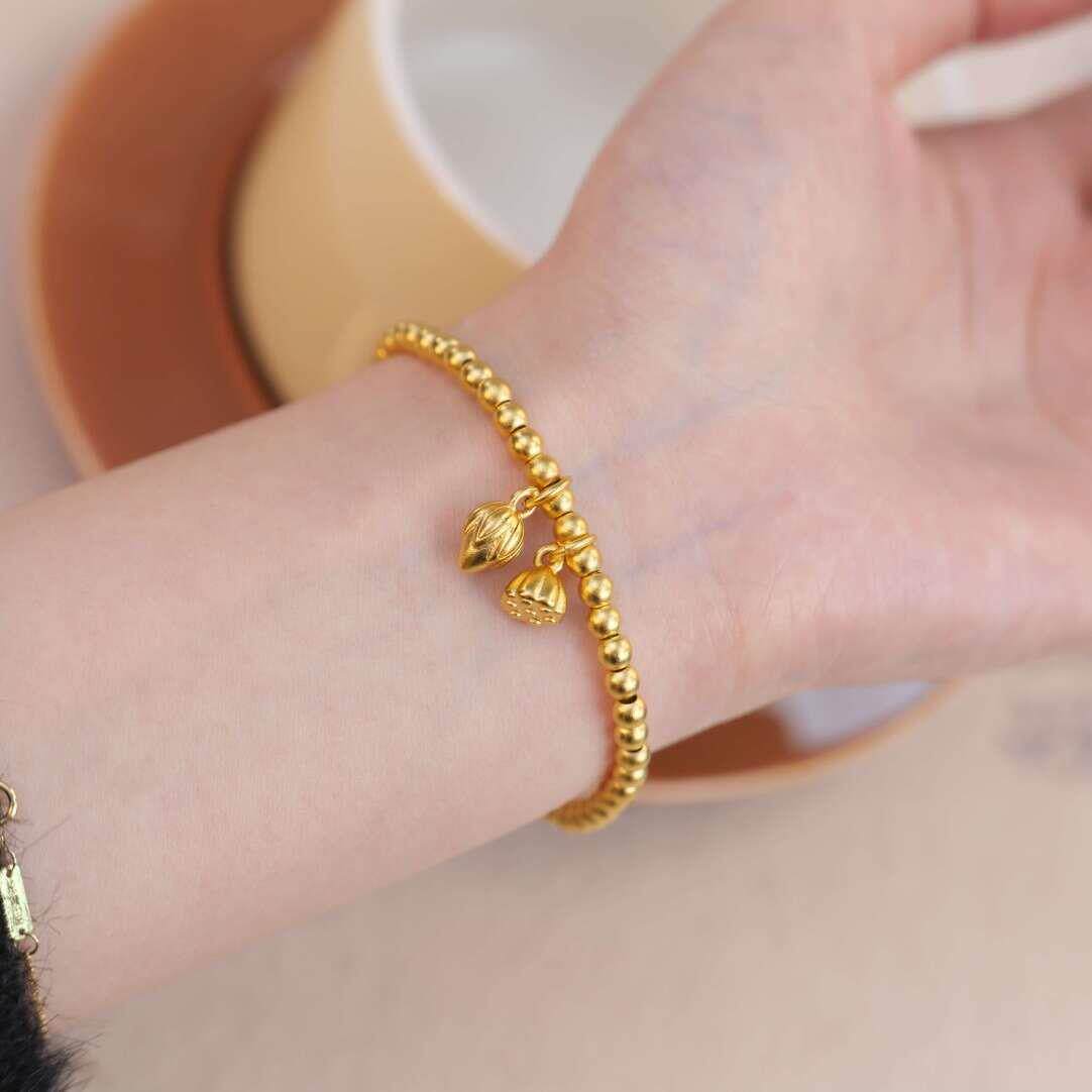 沙金饰品两世欢转运珠手链女仿真黄金轻奢小众高级感DIY手串配饰