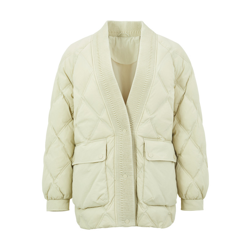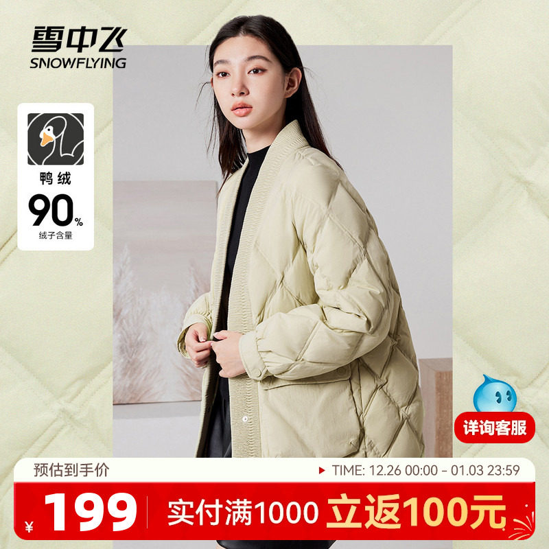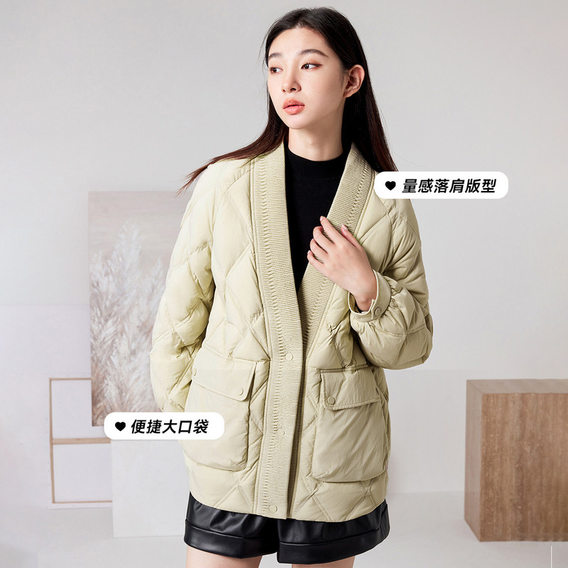 雪中飞2025秋冬女士短款大V领羽绒服廓形时尚菱格鸭绒保暖外套