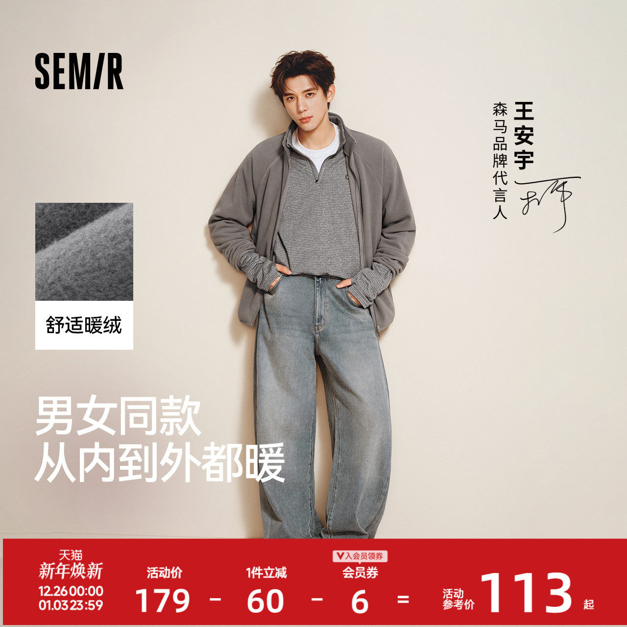 王安宇同款森马摇粒绒外套2025秋冬新款抗静电夹克保暖内胆男女款
