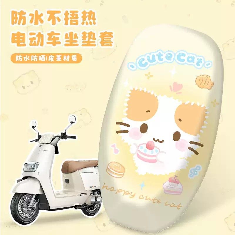 棉花糖猫电动车座套摩托电瓶车坐垫罩防水可爱适用于爱玛雅迪台铃