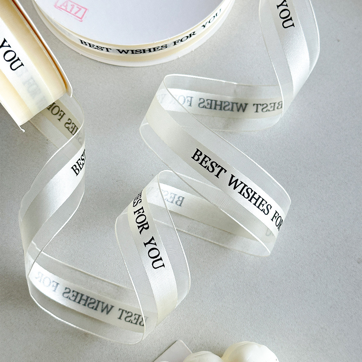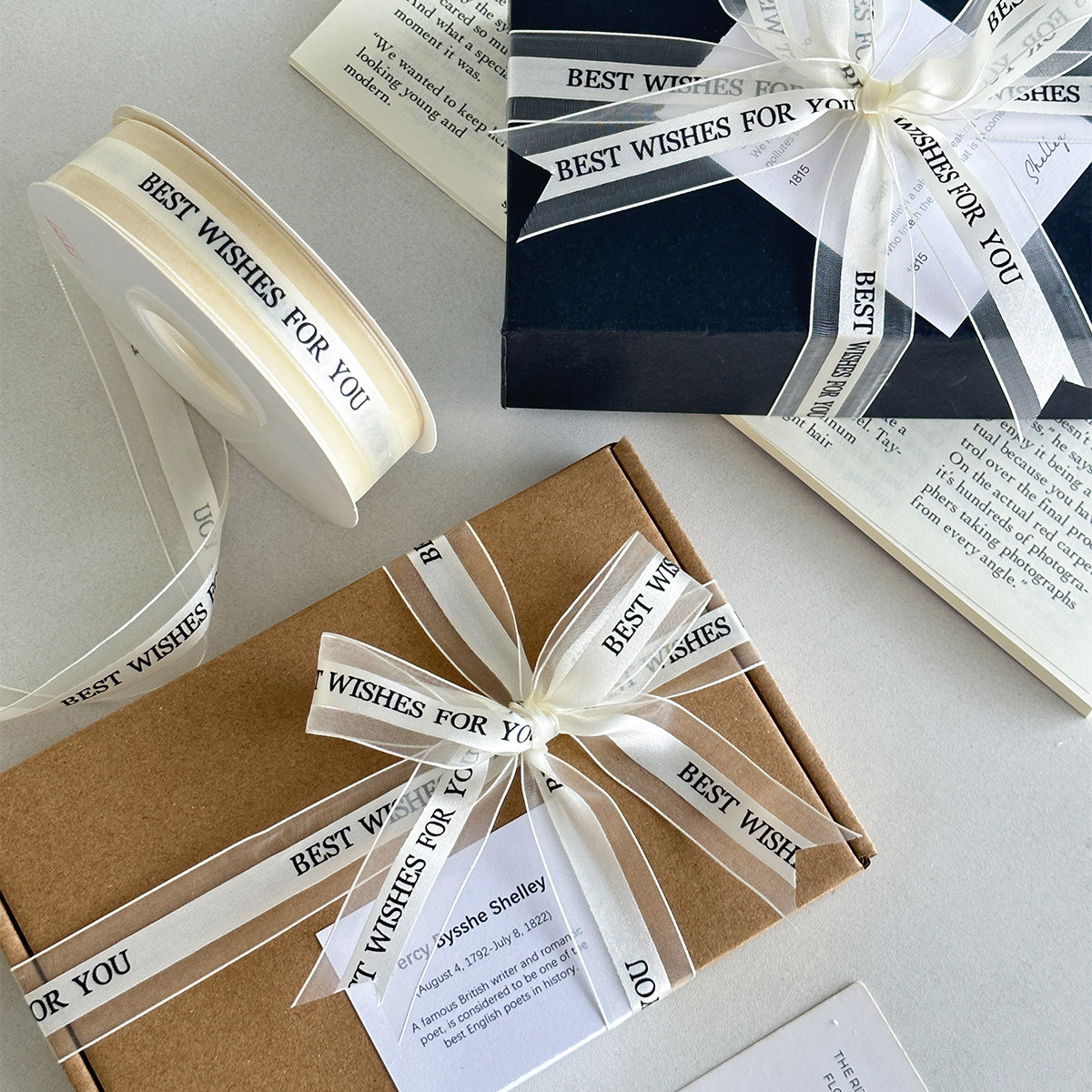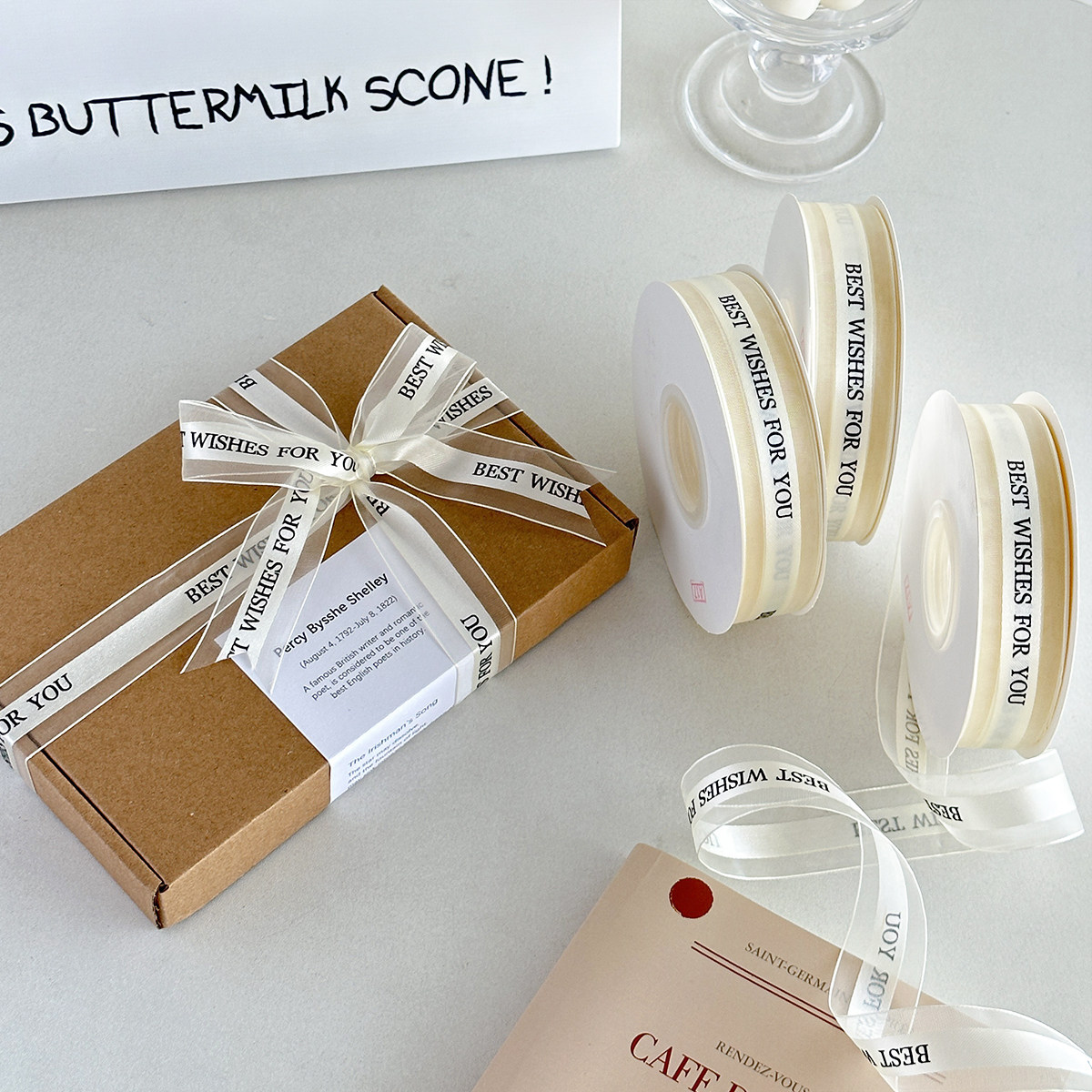 ins风英文雪纱带礼物盒装饰绳子鲜花束diy蝴蝶结绑带唯美奶油色系