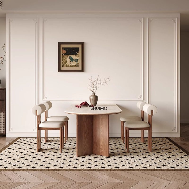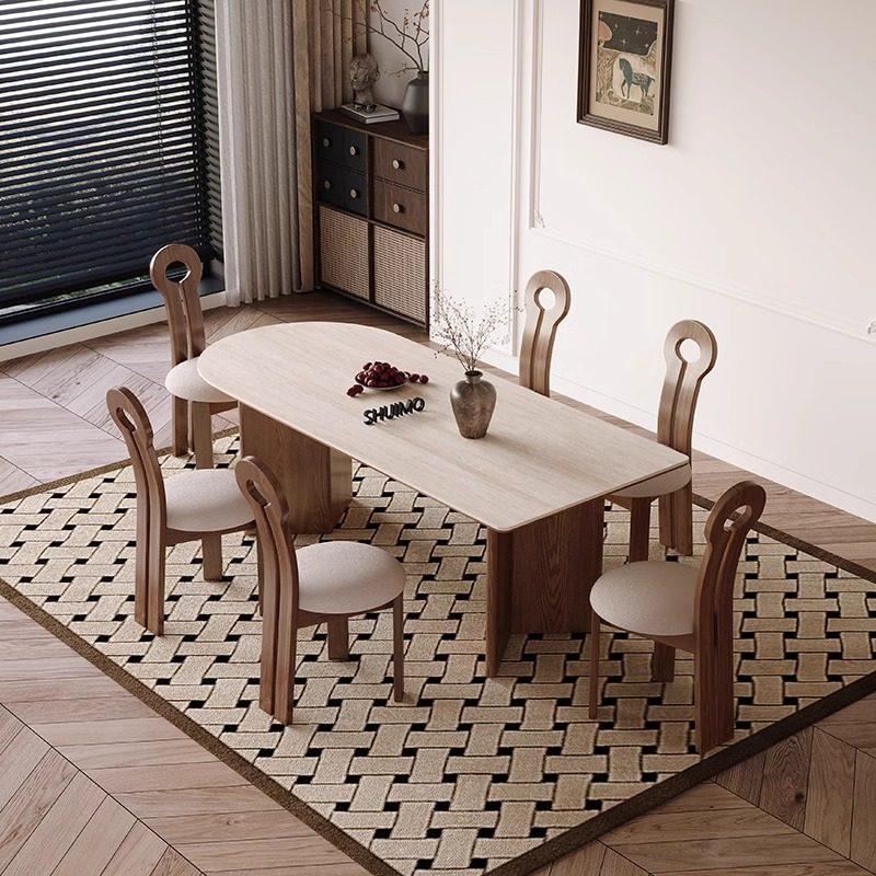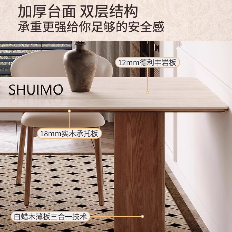 德利丰岩板洞石法式餐桌家用小户型轻奢奶油半圆长方形餐桌子客厅