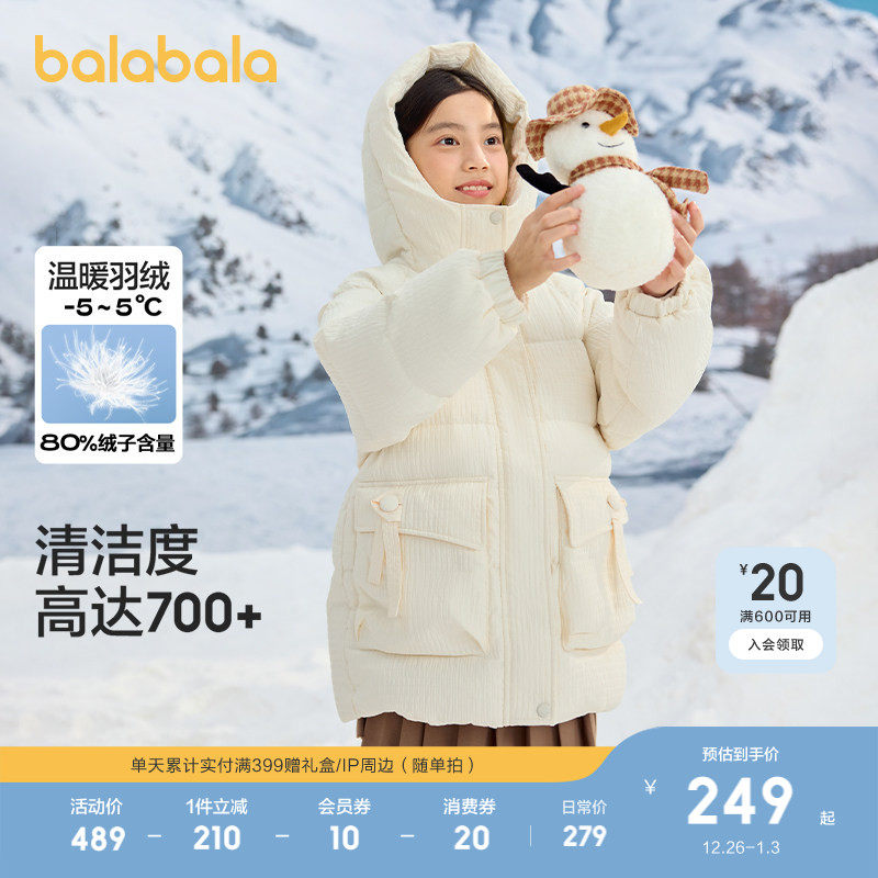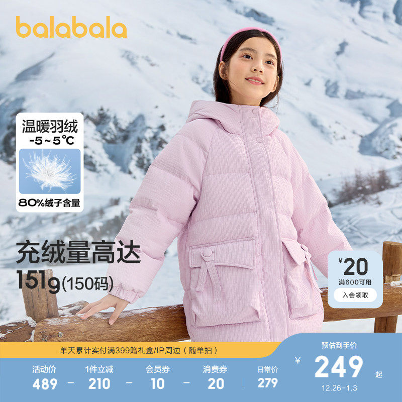 巴拉巴拉童装女童羽绒服儿童面包服外套加厚冬装甜美肌理连帽上衣
