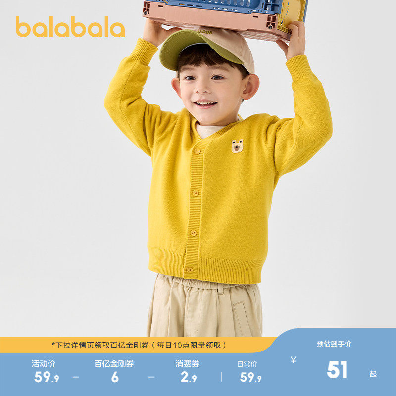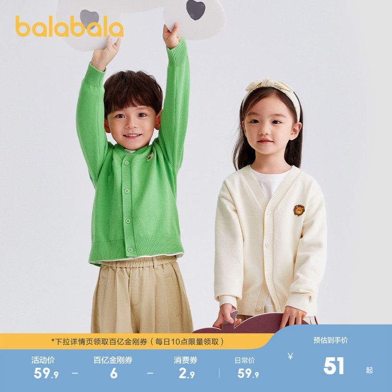 巴拉巴拉童装男童毛衣开衫2025春秋春秋女童宝宝针织衫上衣上衣潮